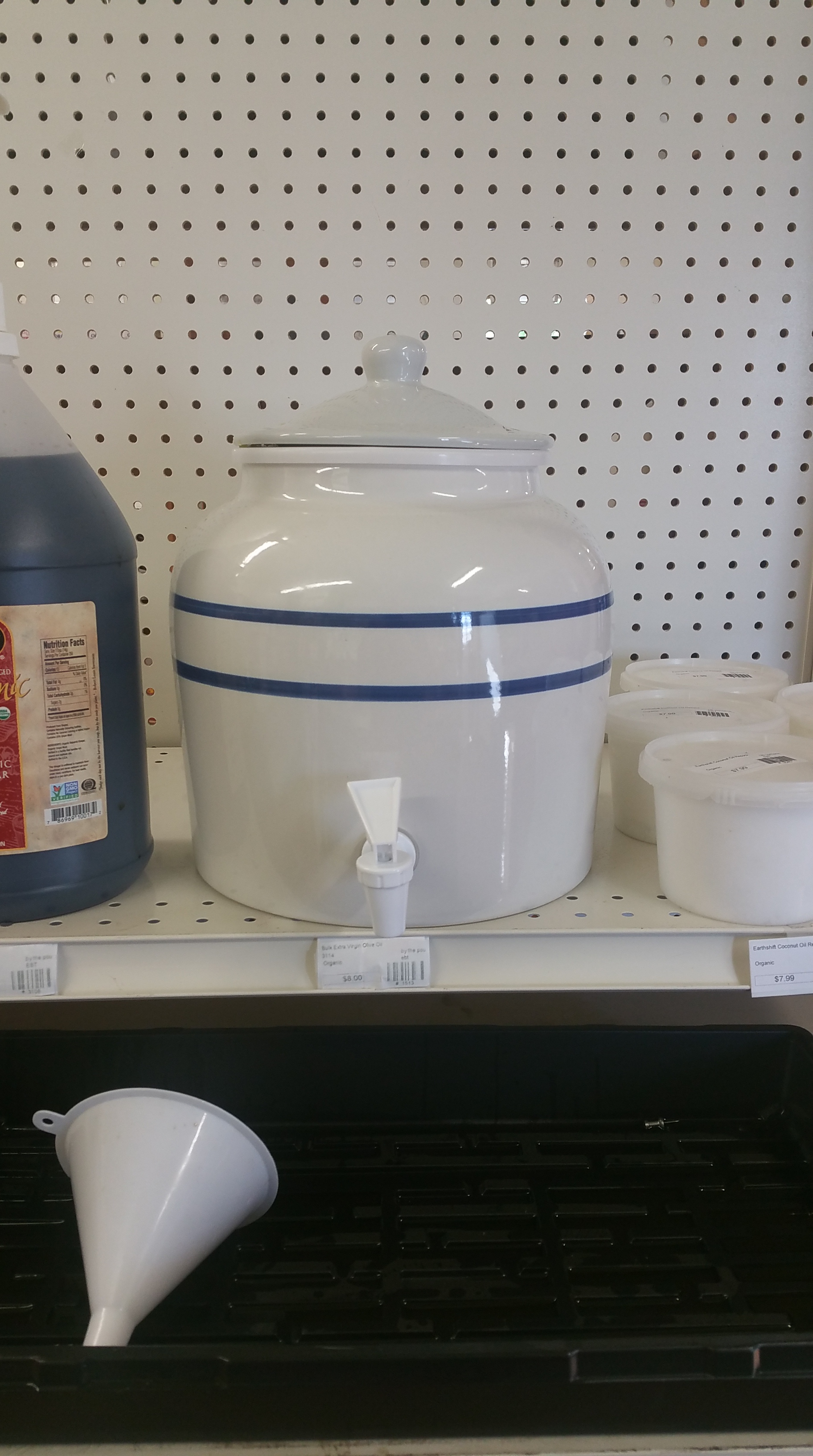 Check out our new Bulk Olive Oil container at the store! It is very important to keep olive oil in an opaque container to keep it from degrading. This should do the trick!