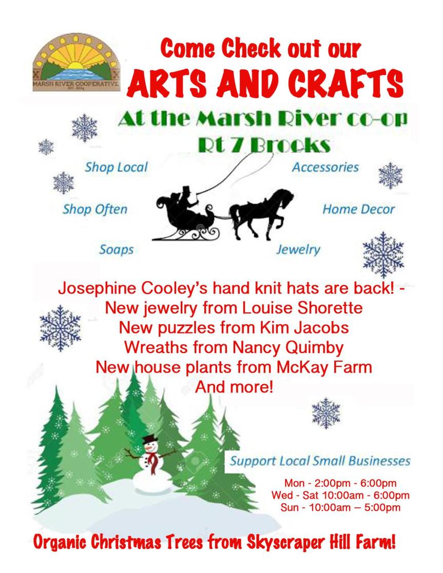 Regrettably the stars did not align for us to do a Craft Fair this year. That being said we still have a great selection of local crafts to pick from right before the holidays including several returning crafters. We’d love to offer more as well so if you know someone that is looking to sell there crafts please feel to reach out to us at marshriverordering@gmail.com. Come on in to your Co-Op and check them out!