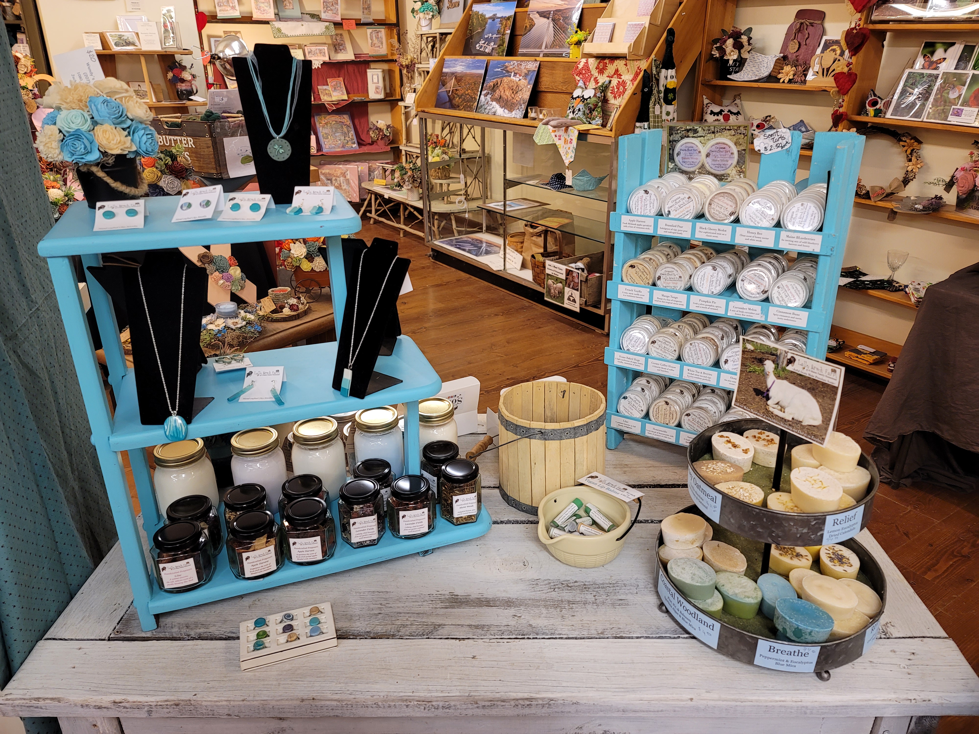 We have a mix of items from Lally Broch Farm in Frankfort, they do a bunch of soaps and other items that we’ll get closer pictures of in future but they also make Jewelry.