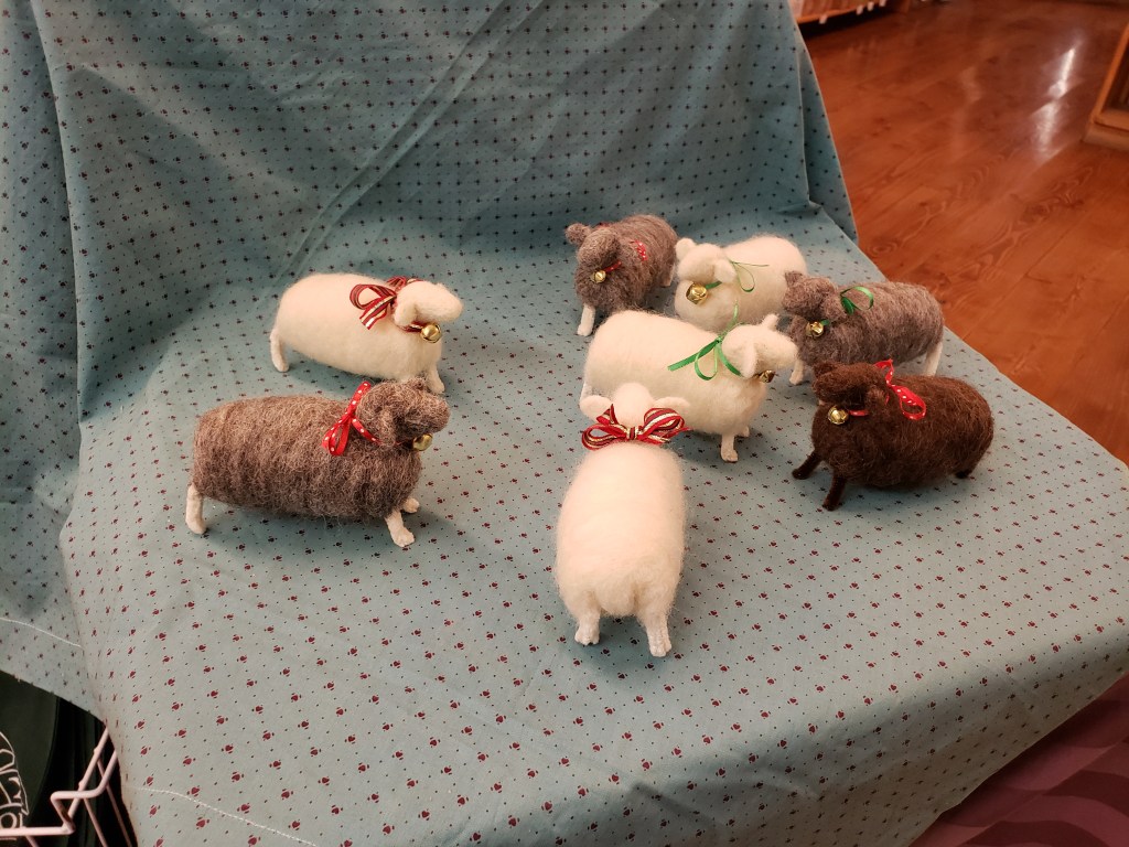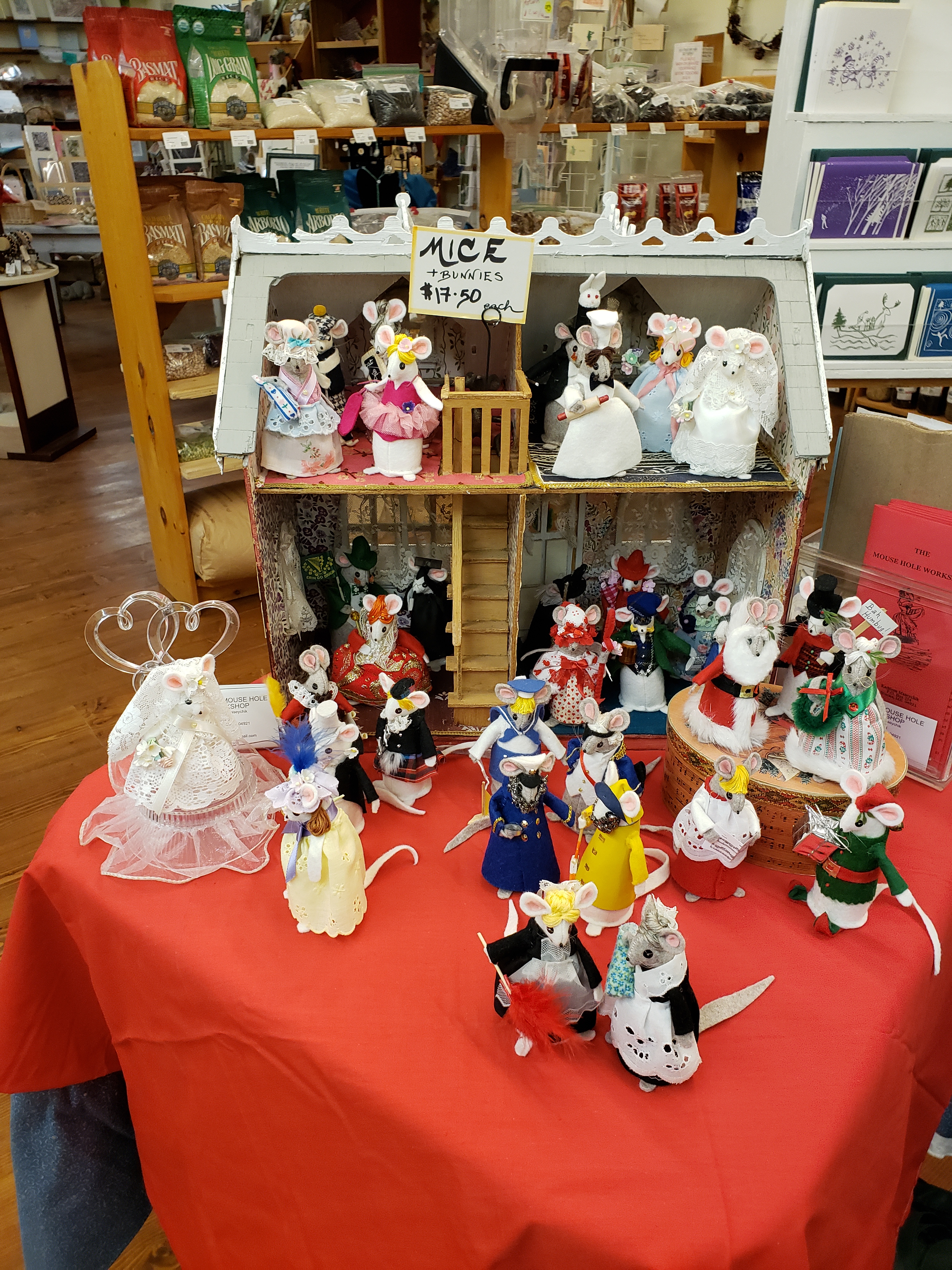First up is Mulberry Marsh (Meredith, Jackson)(her stuff can also sometimes be found d at the United Farmers Market) who has wonderful felted sheep. She also brings in the hand made mice(the detail is amazing) from the Mice Workshop which have been made by the same person for 60 years!