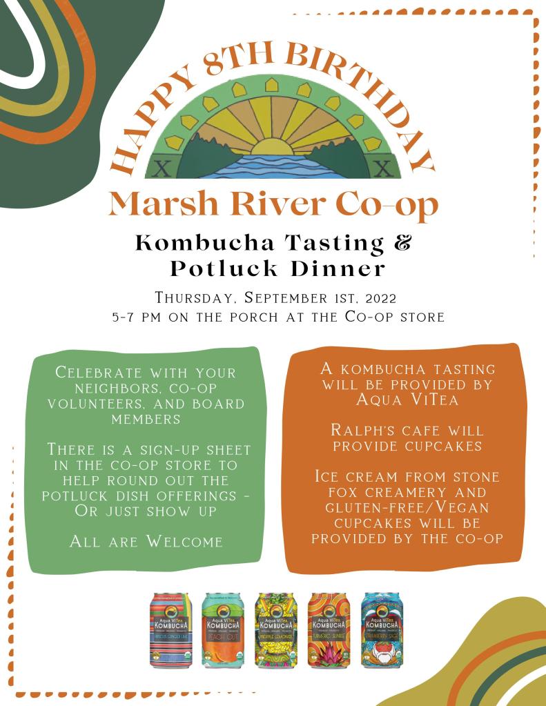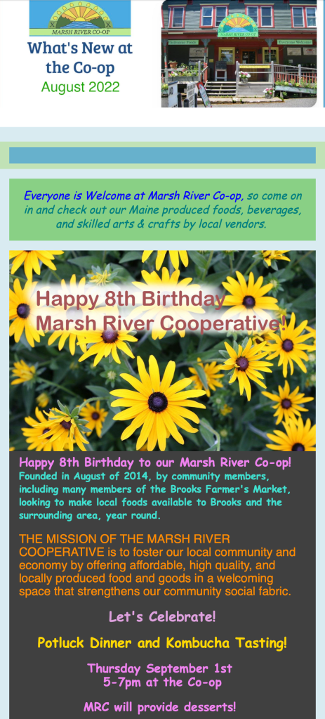 It’s time for our August Newsletter with all the recent updates for the Co-op and community. If you don’t read the whole newsletter we do want to let you know that the Co-op will be having it’s 8th birthday party on September 1st from 5-7pm. We are planning to do it on the porch, weather depending, and if everything goes to plan we’ll have deserts, ice-cream and a kombucha tasting as well as potluck!